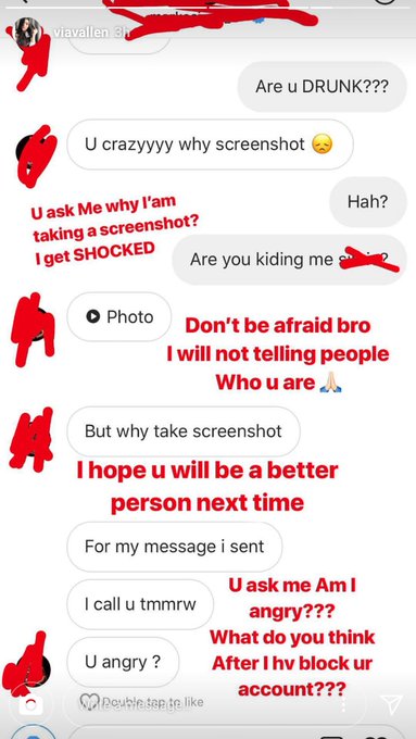 Via Vallen mengaku terkejut dan merasa dilecehkan. Dia kemudian menscreenshot pesan itu dan mempostingnya di Instagram Stories. Via pun menambahkan sejumlah kata-kata yang menujukkan bahwa dirinya sangat kesal.