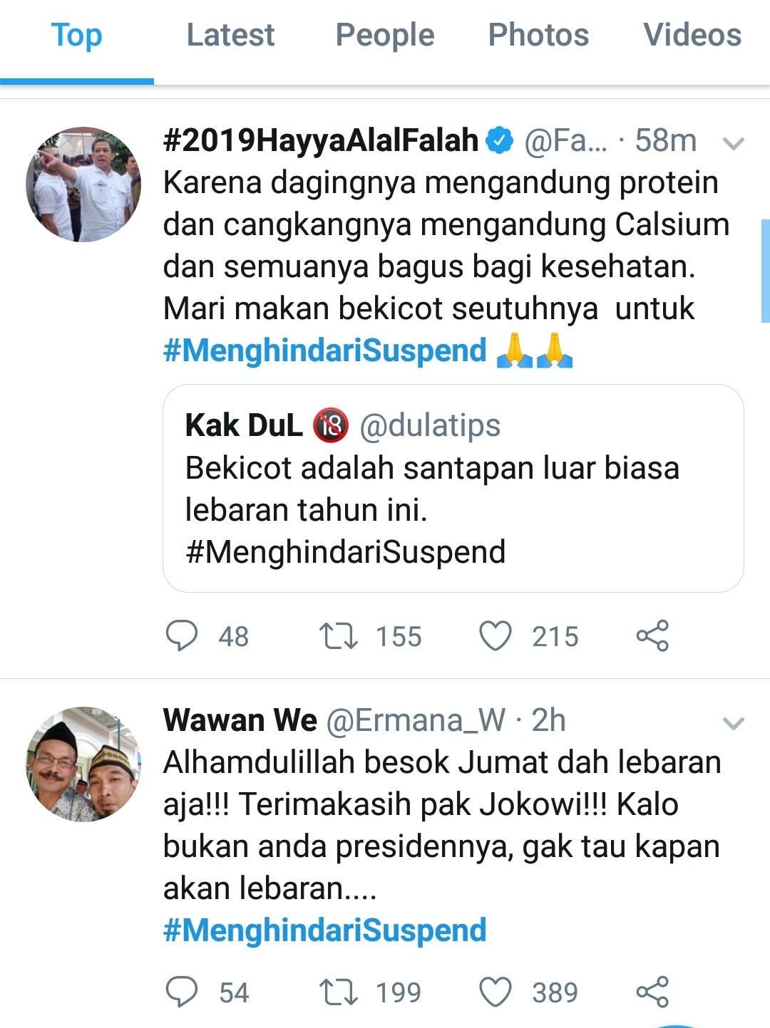 Selang beberapa lama, akun milik Ferdinand dibekukan dan mulai bermunculan aneka tweet bernada satire dari netizen. Sebagian menuliskan kekagumannya pada sosok Jokowi yang dinilai berhasil membuat kebijakan pro rakyat seperti kebijakan makan bekicot pengganti daging, atau mengenai lebaran yang digadang jatuh pada hari Jumat esok.