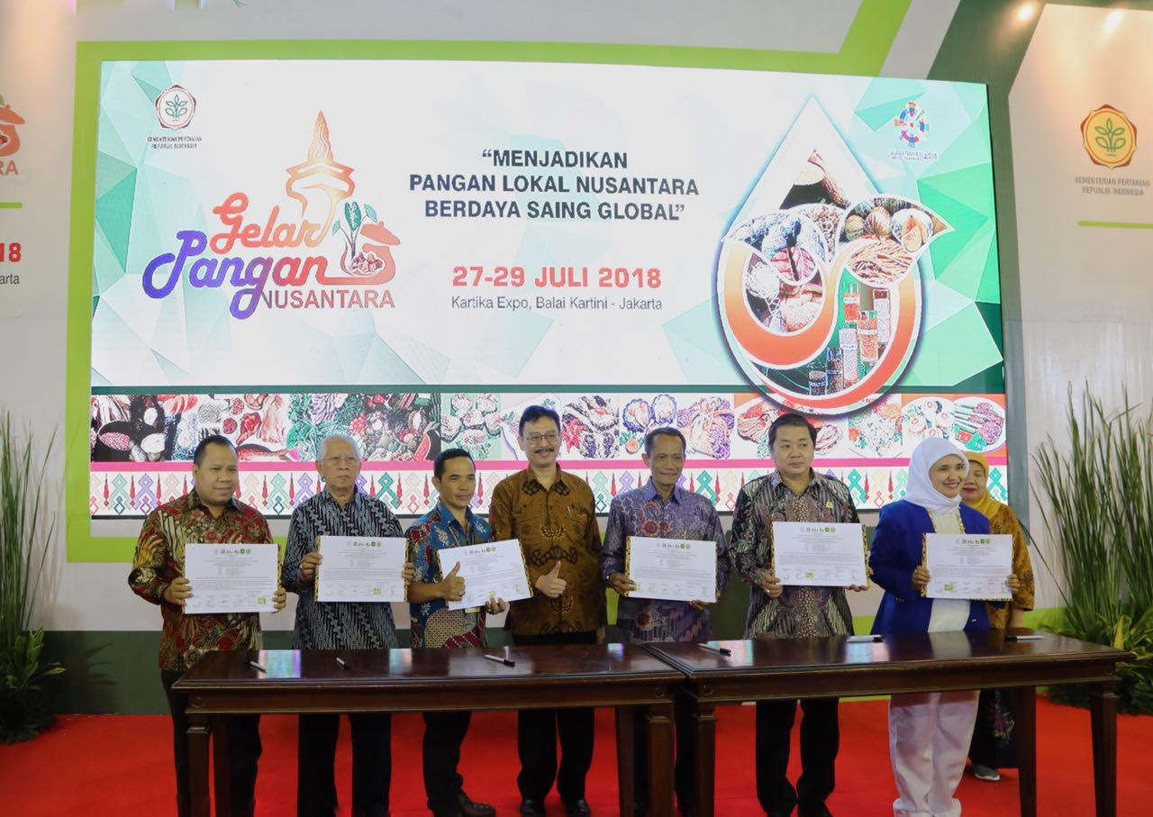 Dalam kesempatan ini juga dilakukan penandatangan MOU pengembangan pangan lokal antara Badan Ketahanan Pangan Kementerian Pertanian dengan Forum Komunikasi Kabupaten Penghasil Sagu Seluruh Indonesia (Fokus Kapassindo), Masyarakat Singkong Indonesia (MSI), Asosiasi Petani Organik Bumi Pasundan (Asetna Bunda), Gabungan Pengusaha Makanan dan Minuman Indonesia (GAPPMI), Ikatan Wanita Pengusaha indonesia (IWAPI).