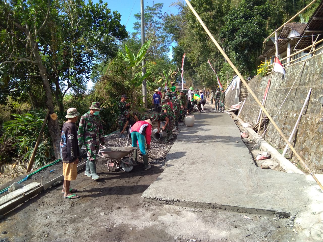 Setelah memasuki hampir satu bulan, pengerjaan pembangunan infrastruktur pengecoran jalan penghubung desa Gandusari akhirnya memasuki tahap selesai. Walaupun peralatan yang digunakan tergolong sederhana, tetapi itu tidak menjadi penghalang bagi para pekerja anggota satgas tmmd maupun masyarakat.