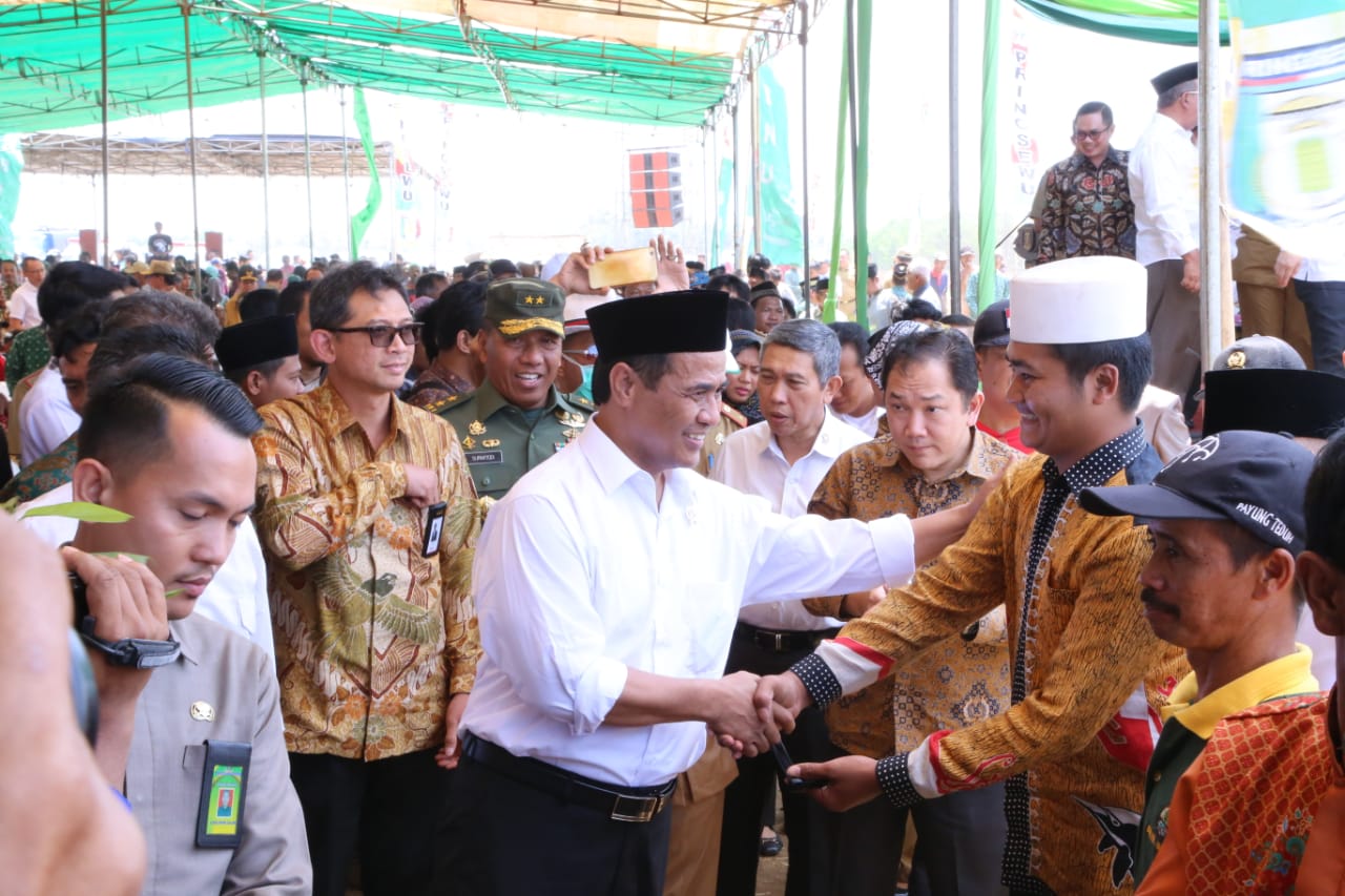 Menteri Pertanian Andi Amran Sulaiman menyapa warga Lampung sebelum melakukan tanam jagung serentak