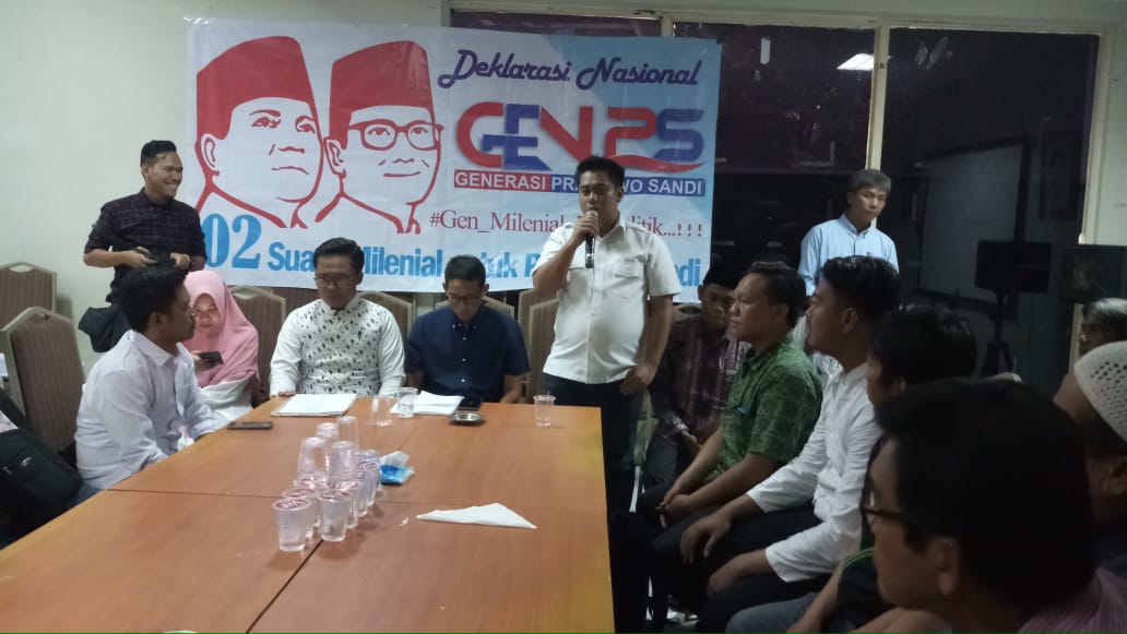 Seperti diketahui, GEN PS resmi mendeklarasikan dukungan bagi paslon Prabowo-Sandi, Kamis (4/10). Deklarasi ini dihadiri langsung oleh Sandiaga Uno. Dalam kesempatan itu, GEN PS juga melakukan penandatanganan kontra politik yang berisikan sepuluh poin kesepakatan antara GEN PS dengan Prabowo-Sandi.