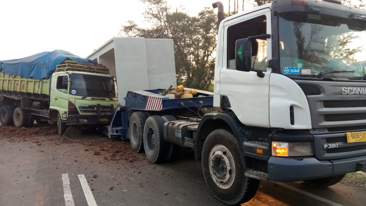 Pada saat itu juga, sebuah dump truck bernomor polisi B 9409 TYU yang berada di jalur 2 menabrak truk trailer karena hendak menghindari kendaraan di sampingnya. Berdasarkan pengamatan petugas Kepolisian, kecelakaan disebabkan pengemudi dump truck yaitu Budiyono, warga asal Banjarnegara, Jawa Tengah mengantuk saat mengendara.