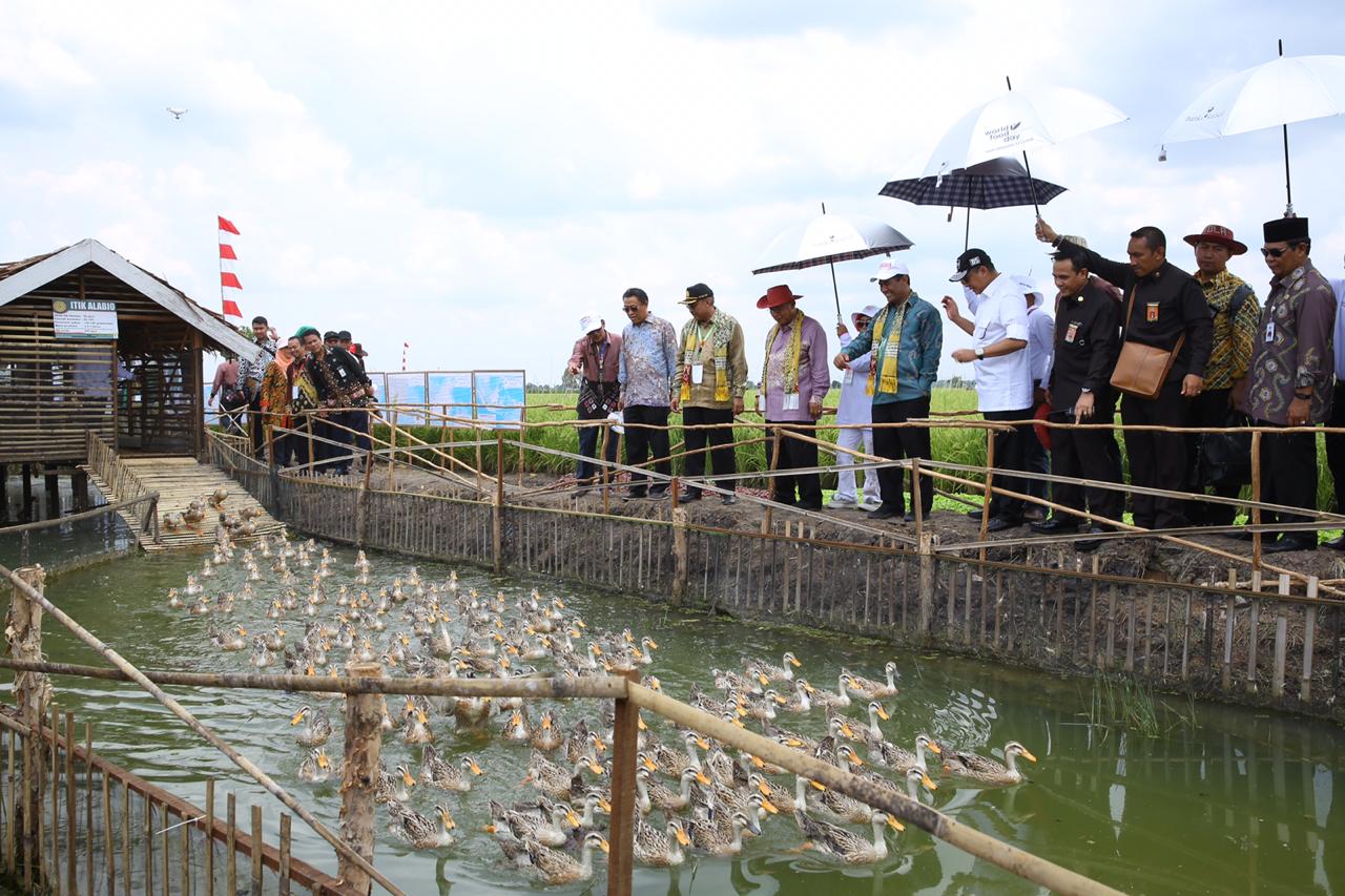 Menko perekonomian Darmin Nasution, Mentan Andi Amran, Gubernur Kalsel Sahbirin Noor dan jajarannya meninjau lokasi pemeliharaan itik lahan rawa