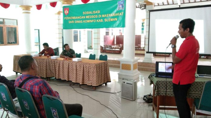 MONITOR, Sleman – Akhir-akhir ini dunia maya banyak dimunculkan informasi dan berita palsu atau lebih dikenal dengan istilah “hoax” oleh sejumlah oknum yang tidak bertanggungjawab. Jika tidak ada kehati-hatian, netizen pun dengan mudah termakan tipuan hoax tersebut bahkan ikut menyebarkan informasi palsu itu, tentunya akan sangat merugikan bagi pihak korban fitnah. Lalu bagaimana caranya agar tak terhasut? Untuk itulah Satgas TMMD Reguler ke 103 Kodim 0732/Sleman bekerja sama dengan Dinas Kominfo Kabupaten Sleman menhgelar sosialisisasi perkembangan medsos diwilayah Kabupaten Sleman ada Jumat 19 Oktober 2018 di balai Desa Balecatur Kec. Gamping.