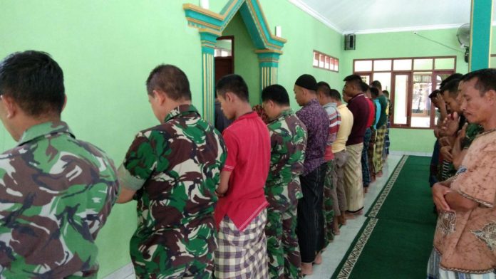 MONITOR, Sleman – Kapten Inf Asrori selaku Danki Satgas TMMD Reguler ke 103 Kodim 0732/Sleman menyampaikan bahwa, kegiatan anggotanya yang menjalankan ibadah sholat berjamaah bertujuan untuk menjalin hubungan yang baik antara tokoh agama dan masyarakat dilokasi TMMD Reguler ke 103 di Desa Balecatur Kec. Gamping. Sabtu (20/10/2018)