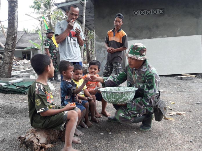 MONITOR, Sleman – Kebahagian anggota Satgas TNI Manunggal Membangun Desa (TMMD) tak mengenal umur selain sama orang dewasa tapi mereka juga dekat dengan anak-anak Desa Balecatur.