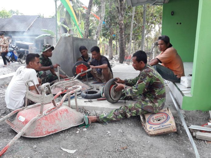 MONITOR, Sleman – Apa yang tidak bisa dilakukan TNI anggota Satgas TMMD Reguler ke-103 Kodim 0732 Sleman dalam menuntaskan pekerjaan sasaran fisik TMMD. Semua pekerjaan yang berkaitan dengan bangunan hampir semuanya bisa dilakukan oleh para anggota Satgas TMMD.