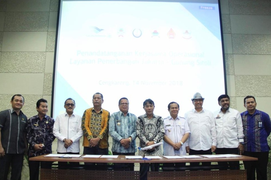 Menandai pembukaan rute baru tersebut, pada hari ini Rabu, 14/11 dilaksanakan penandatanganan kerjasama antara Garuda Indonesia dengan Pemerintah Daerah di Kepulauan Nias. Dibukanya layanan penerbangan Jakarta – Nias tersebut dapat terlaksana berkat dukungan penuh dari Pemerintah Daerah Kepulauan Nias yang secara proaktif terus mendukung upaya perluasan jaringan penerbangan Garuda khususnya di Kepulauan Nias.