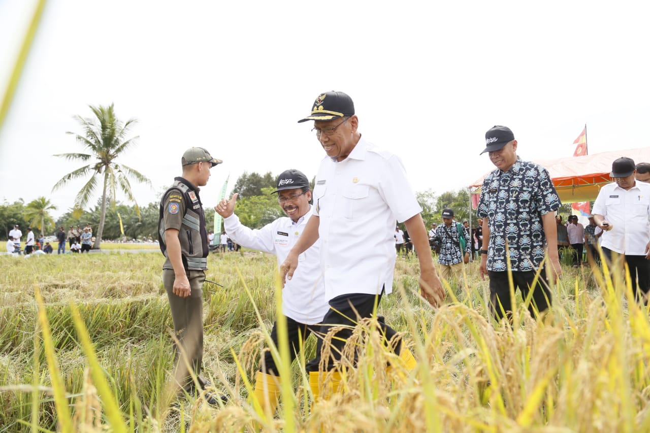Wakil Bupati H. Slamet Seno Sentono, SH, didampingi Kepala BB Padi Dr. Priatna Sasmita melihat langsung keragaan tanaman padi Inpara dengan penerapan teknologi RAISA di Desa Sumber Jaya, Kecamatan Tungkal Ilir, Kabupaten Banyuasin, Prov. Sumatera Selatan
