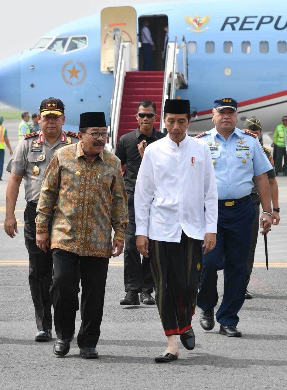 MONITOR, Sidoarjo – Presiden Joko Widodo (Jokowi) hari ini bertolak ke Provinsi Jawa Timur untuk kunjungan kerja. Setibanya di Bandar Udara Internasional Juanda, Kabupaten Sidoarjo pukul 09.18 WIB, Presiden disambut oleh Gubernur Jawa Timur Soekarwo, Pangdam V/Brawijaya Mayjen TNI Arif Rahman, dan Kapolda Jawa Timur Irjen Pol. Lucky Hermawan.