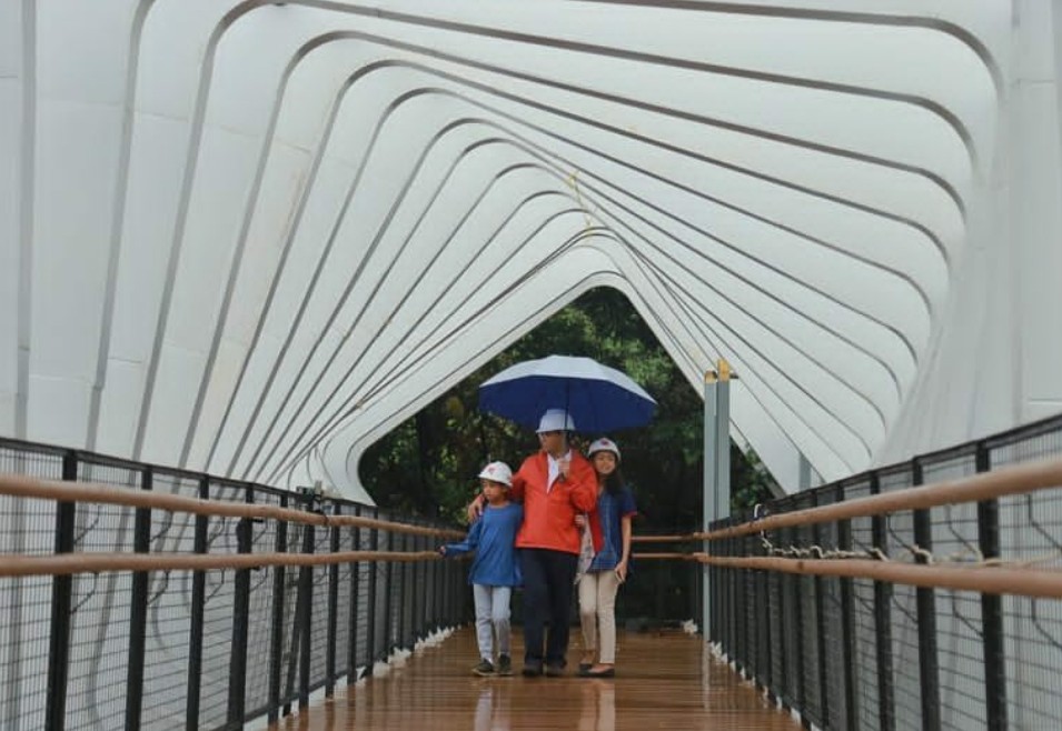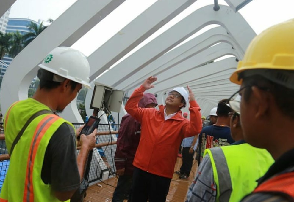 Hal itu dikatakan Anies saat dirinya inspeksi proyek JPO tersebut, sekaligus mengajak kedua buah hatinya, Ismail dan Tia, untuk menjajal JPO yang didesain cukup unik dan cantik tersebut.