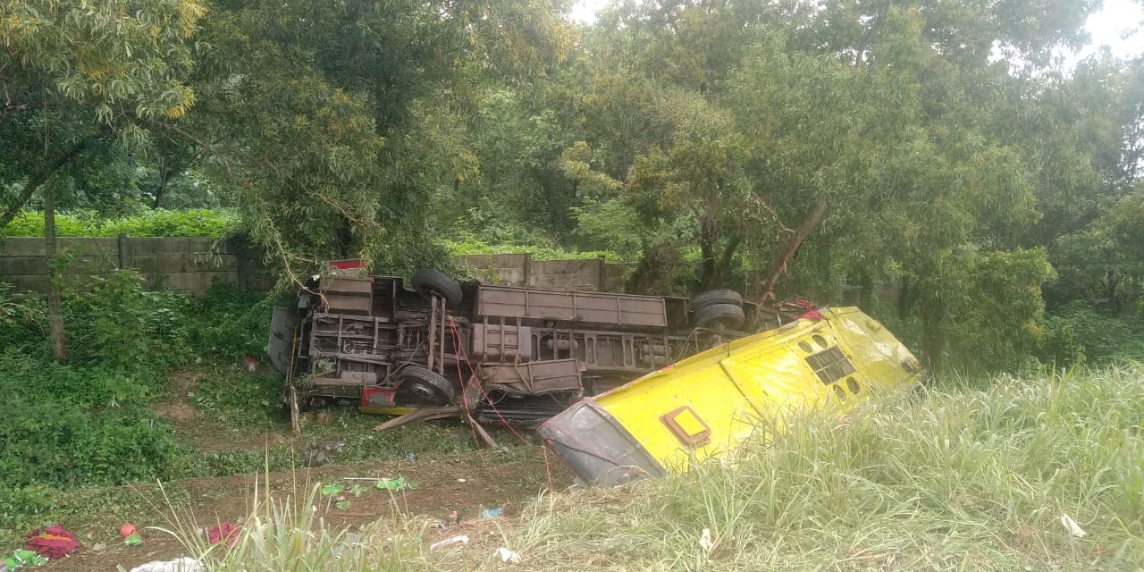 Bus kemudian menabrak guardrail (pembatas) kiri jalan dan lalu masuk ke selokan (row) di kiri jalan. Saat itu, cuaca di sekitar lokasi kejadian dalam keadaan hujan.