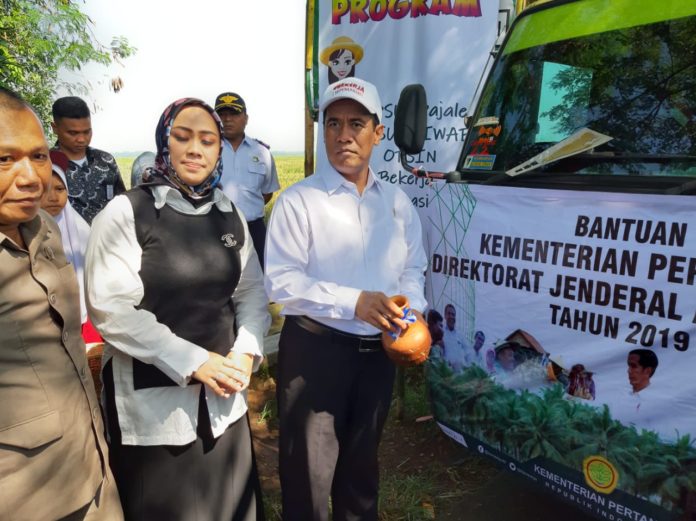 MONITOR, Karawang – Menteri Pertanian Andi Amran Sulaiman menyalurkan 50 truk, atau 5000 batang bibit kelapa unggul lokal di Karawang, dalam rangkaian acara Apresiasi dan Singkronisasi Program Kementerian Pertanian Tahun 2019 yang digelar di Desa Pacing, Kec Jatisari, Karawang, Jawa Barat, Selasa (26/3).