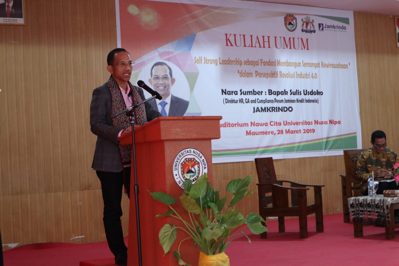 Kegiatan terbaru yang dilaksanakan oleh Perum Jamkrindo dalam rangka meningkatkan semangat kewirausahaan adalah melalui kuliah umum di perguruan tinggi oleh Direktur MSDM, Umum, dan Kepatuhan Perum Jamkrindo Sulis Usdoko di Maumere dan Larantuka, Kamis dan Jumat, 28-29 Maret 2019. Pada Kamis, Sulis Usdoko memberi kuliah umum di Maumere, sementara pada Jumat dilanjutkan dengan kuliah umum di Larantuka.