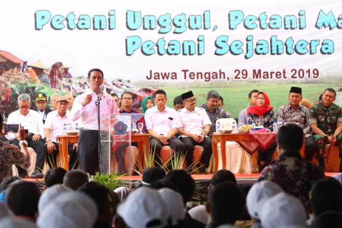 MONITOR, Brebes – Masyarakat Petani Kabupaten Brebes, Tegal dan Pemalang, Jawa Timur mengikuti Pertemuan Apresiasi dan Singkronisasi Program Kementerian Pertanian tahun 2019 yang digelar di Kabupaten Brebes, Jumat (29/3). Pertemuan ini hadiri lebih dari 8 ribu petani, santri tani, pendamping desa dan penyuluh pertanian.