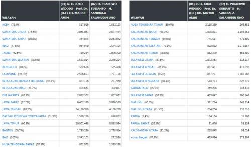 Berikut perolehan masing-masing calon di tiap provinsi: