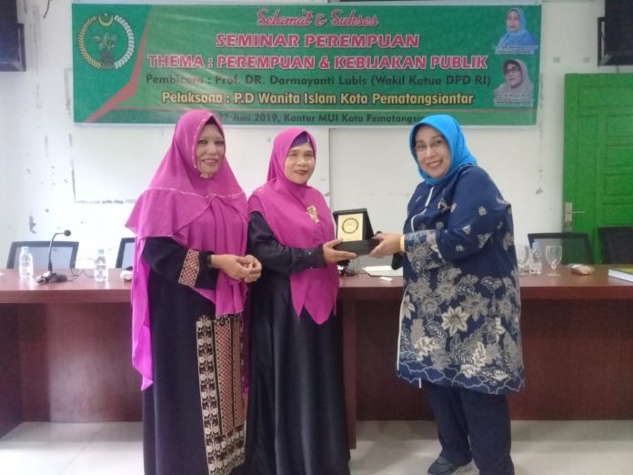 “Jadi para perempuan, belajarlah ilmu politik. Negara tidak ada membatasi peranan perempuan. Tetap diberikan kesempatan yang sama dengan laki-laki,” kata Darmayanti dalam seminar bertajuk Perempuan dan Kebijakan Publik, yang digelar Pengurus Daerah Wanita Islam Kota Pematangsiantar di Gedung Majelis Ulama Indonesia (MUI), Jalan Kartini, Kamis (27/6).