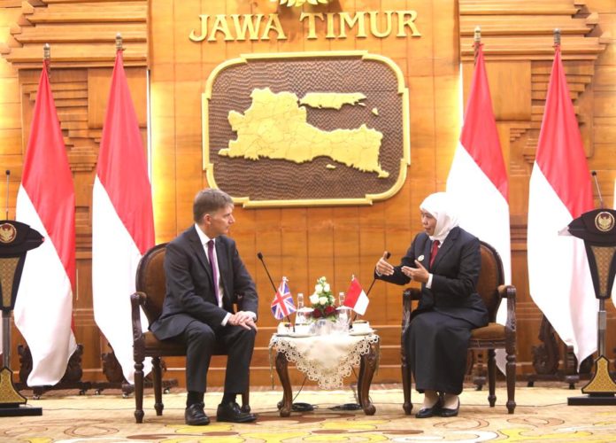 MONITOR, Surabaya – Gubernur Jatim Khofifah Indar Parawansa menerima kunjungan Duta Besar (Dubes) Inggris untuk Indonesia Owen Jenkins di Gedung Negara Grahadi Surabaya, Selasa (27/8).