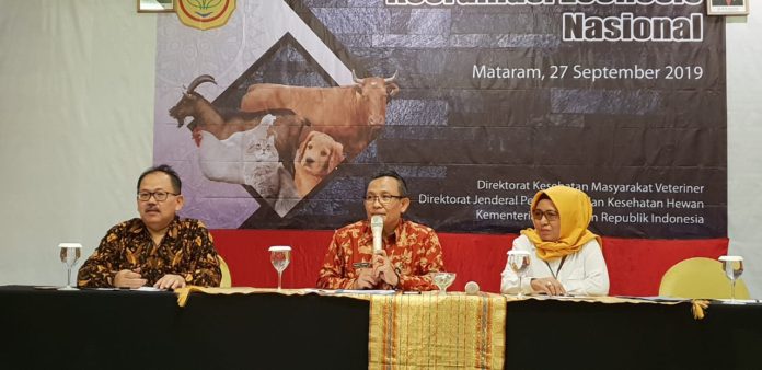 “Upaya pengendalian zoonosis merupakan prioritas utama di sektor kesehatan hewan, karena hal tersebut dapat meminimalisir ancaman pada kesehatan masyarakat dan mampu meningkatkan ekonomi usaha peternakan” terang Direktur Kesehatan Masyarakat Veteriner, Syamsul Ma’arif saat membuka Rapat Koordinasi Zoonosis Nasional di Mataram, Jumat (27/9).
