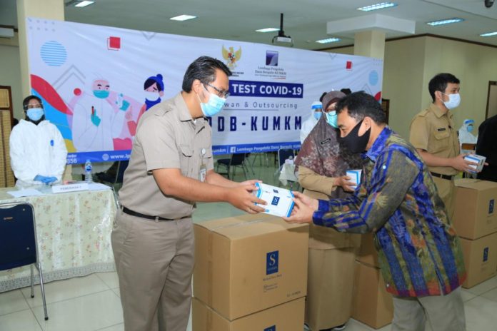 Selain memberikan bantuan masker kepada Puskesmas, LPDB-KUMKM juga menggelar Rapid Test massal bagi seluruh karyawannya. Hal ini dilakukan sebagai bentuk pencegahan penyebaran Covid-19 di lingkungan kerja dan menjaga masyarakat ketika karyawannya sedang menjalankan program-program pemerintah, salah satunya program Pemulihan Ekonomi Nasional (PEN).