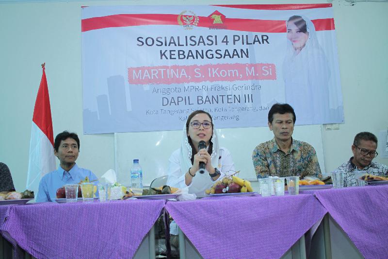 MONITOR, Tangerang – Anggota DPR dari Fraksi Partai Grakan Indonesia Raya (Gerindra) Martina S.Ikom M.Si menggelar kegiatan Sosialisasi Empat Pilar Kebangsaan di Kelurahan Rawa Buntu , Kecamatan Serpong, Kota Tangerang Selatan, Selasa (23/11).
