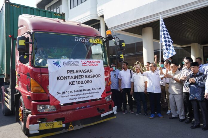 Pelepasan ekspor aluminium di PT Maspion Group kali ini bertepatan dengan tercapainya ekspor ke-100.000 kontainer berbagai produk Maspion ke pasar global. Kontainer nomor 1 yang dilepas hari ini menggenapkan ekspor Maspion menjadi 100.000 kontainer. Artinya, hingga kontainer nomor 22 hari ini Maspion sudah melepas 100.021 kontainer ke pasar global. Mendag mengapresiasi Maspion sebagai salah satu pelaku usaha yang tidak hanya mengisi pasar lokal, tetapi juga berorientasi ekspor.