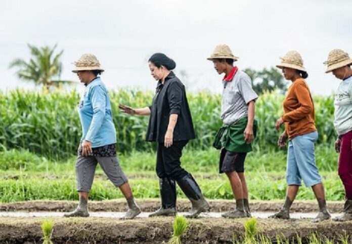 MONITOR, Badung – Ketua DPR RI Puan Maharani turun menemani para petani di Desa Adat Sedang, Abiansemal, Kabupaten Badung, Bali, untuk bercocok tanam. Mengenakan busana warna hitam, Puan terlihat bersemangat melakukan kegiatan tanam tersebut.