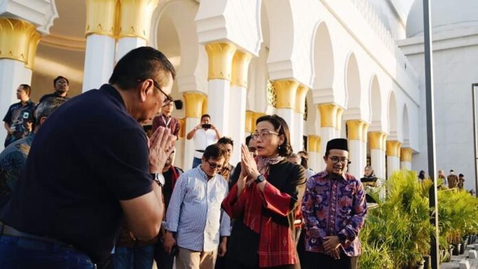 MONITOR, Solo – Ditengah rangkaian pernikahan putra bungsu Presiden Joko Widodo, Kaesang Pangarep dan Erina Gudono, Menteri Keuangan Sri Mulyani Indrawati menyempatkan untuk shalat di Masjid Raya Sheikh Zayed Surakarta.