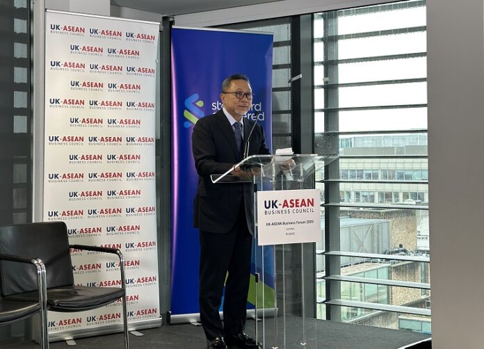 Forum Bisnis Inggris-ASEAN diselenggarakan United Kingdom ASEAN Business Council (UKABC) dan dihadiri Duta Besar LBBP RI untuk Inggris Desra Percaya, Ketua Kamar Dagang dan Industri Indonesia (KADIN) Arsjad Rasjid, Sekretaris Jenderal ASEAN Kao Kim Hourn, Menteri Negara Inggris untuk Bisnis dan Perdagangan Nigel Huddleston MP, serta Menteri Negara Inggris untuk Indo- Pasifik Anne-Marie Trevelyan MP.