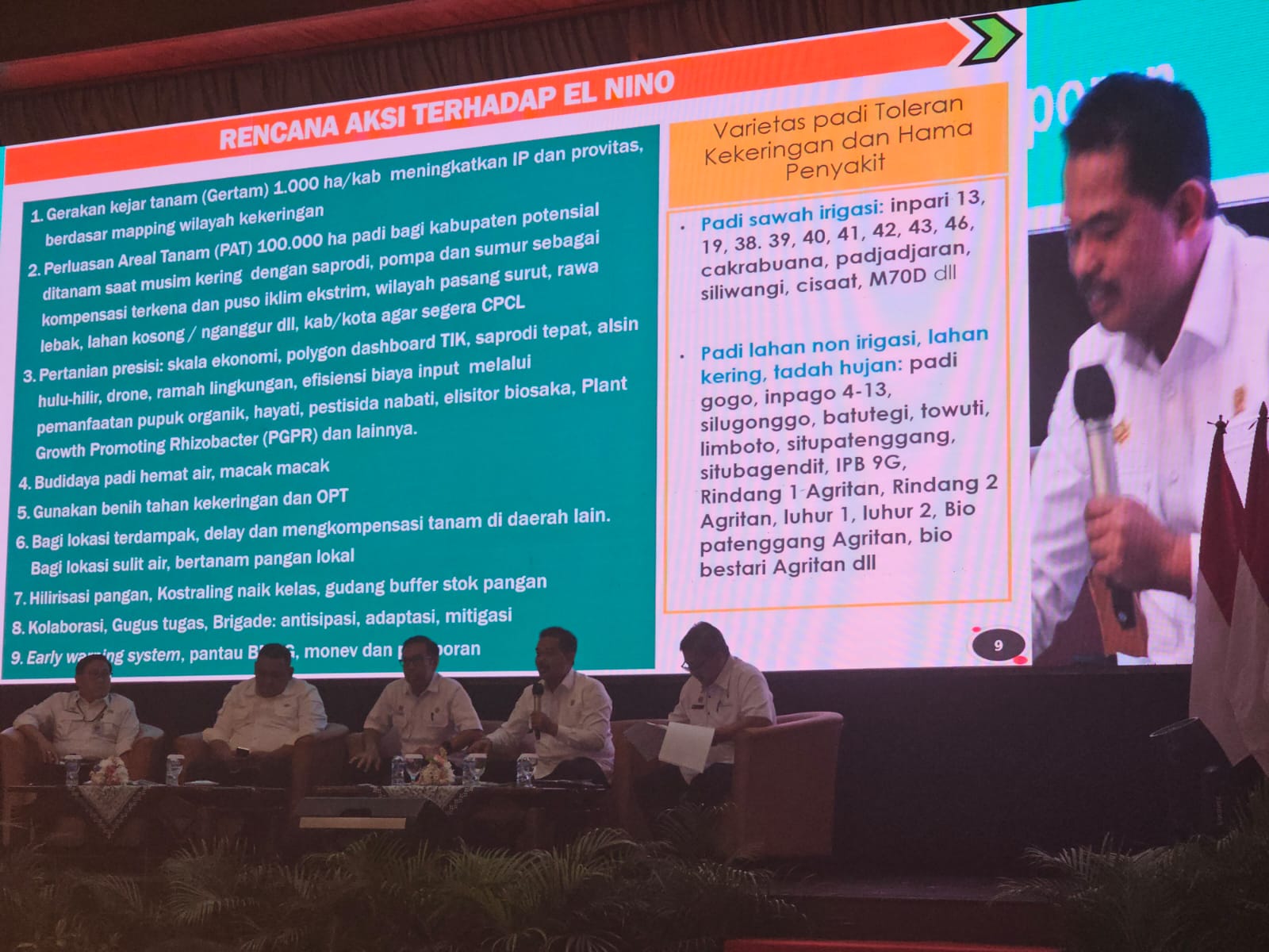 “Menghadapi musim kering ekstrim atau El-Nino, saya minta jajaran Kementan berada di lapangan membantu para petani yang kesulitan. Kemudian saya juga meminta persiapan dari semua daerah di seluruh Indonesia,” ujar Suwandi.