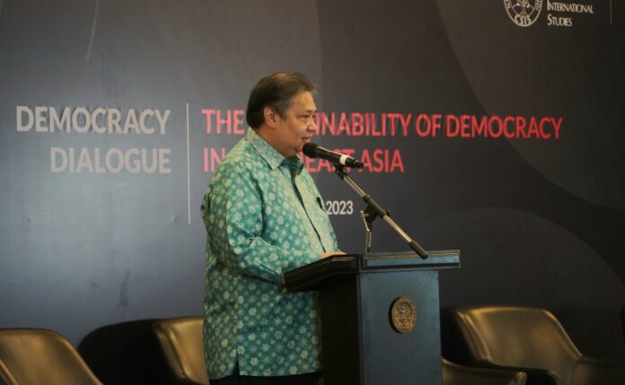 “Berdasarkan Democracy Report 2022 dari V-Dem Institute, menyatakan terjadi kemunduran kualitas demokrasi di Asia Tenggara yang mengarah ke rezim otokratis. Tapi Indonesia tidak akan mengalami rezim otokratis. Indonesia adalah salah satu negara multi partai di dunia,” kata Menteri Koordinator Bidang Perekonomian Airlangga Hartarto dalam acara Democracy Dialogue yang diselenggarakan oleh The Jakarta Post, Senin (07/08/2023).