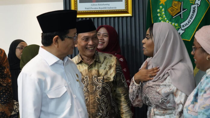 MONITOR, Jakarta – Menteri Agama Nasaruddin Umar terima kunjungan delegasi Australia – Indonesia Muslim Exchange Program (AIMEP) di kantor Kementerian Agama, Jakarta, Rabu (17/9/2025). Menag memaparkan Program Pendidikan Kader Ulama (PKU) dan Pendidikan Kader Ulama Perempuan (PKUP) yang diselenggarakan Masjid Istiqlal sebagai upaya menyiapkan ulama masa depan, termasuk mendorong lahirnya ulama perempuan.