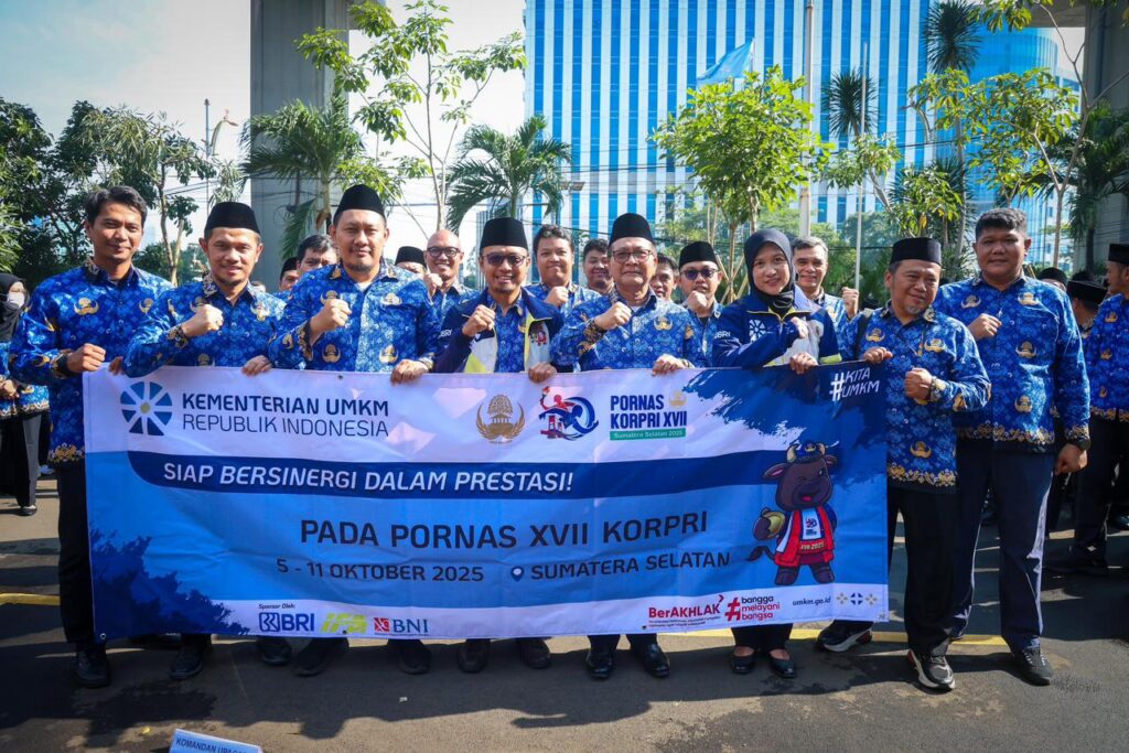MONITOR, Jakarta – Sekretaris Kementerian (Sesmen) Usaha Mikro, Kecil dan Menengah (UMKM), Arif Rahman Hakim, mewakili Menteri UMKM secara resmi melepas kontingen Kementerian UMKM untuk mengikuti Pekan Olahraga Nasional (Pornas) Korpri XVIII yang akan digelar di Palembang, Sumatera Selatan, pada 5–11 Oktober 2025.
