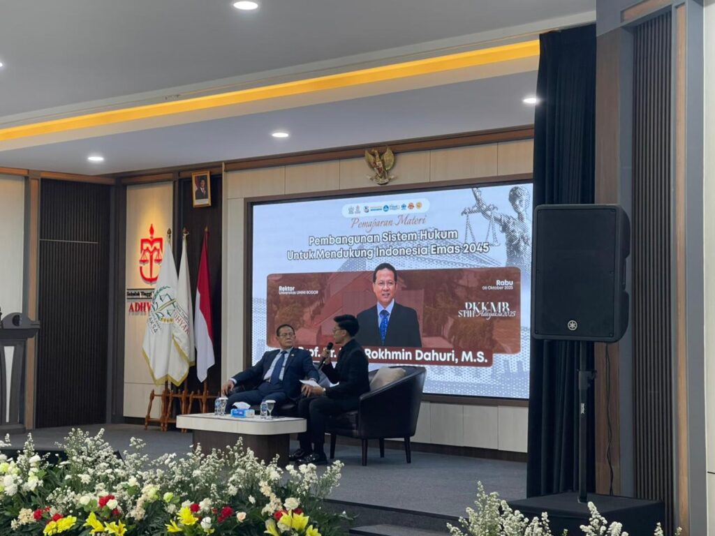 “Negara kuat bukan karena banyaknya regulasi, tapi karena keadilan yang ditegakkan dan keberpihakan hukum pada kepentingan nasional,” katanya saat menjadi narasumber Kuliah Umum bertajuk “Pembangunan Sistem Hukum untuk Mewujudkan Indonesia Emas 2045” di Aula Zamrud Khatulistiwa, STIH Adhyaksa, Jakarta, Rabu (8/10).
