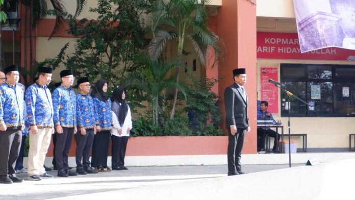 MONITOR, Jakarta – Pimpinan Rektorat dan Civitas Akademika UIN Syarif Hidayatullah Jakarta melaksanakan Upacara Peringatan Hari Pahlawan 2025 di Lapangan Student Center (SC) Kampus I, Ciputat, Tangerang Selatan, Banten, Senin 10 November 2025.