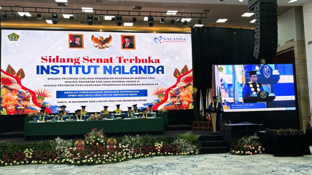 MONITOR, Jakarta – Institut Nalanda mengukuhkan 177 lulusan dalam Wisuda Sarjana dan Pascasarjana Tahun 2025 yang digelar di United Tractors Grand Ballroom, Jakarta, Sabtu (15/11/2025). Mengusung tema “Merajut Keberagaman, Mengukir Spirit Multikultural untuk Indonesia Emas,” prosesi wisuda berlangsung khidmat dan semarak dengan nuansa budaya Nusantara yang mendominasi panggung utama.