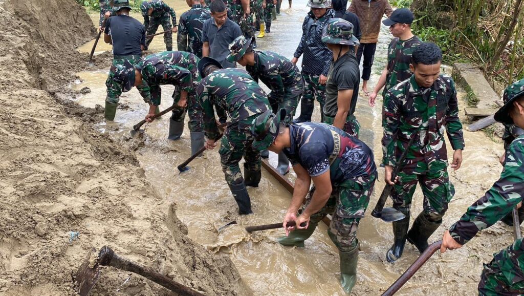 MONITOR, Jakarta – Dalam upaya tanggap darurat penanggulangan bencana di Aceh, Tentara Nasional Indonesia (TNI) melalui Kodam Iskandar Muda mengerahkan ratusan prajurit dari Brigif Teritorial Pembangunan (TP) 90/Yudha Giri Dhanu (YGD) bersama Yonif TP 854/Dharma Kersaka untuk memberikan bantuan langsung kepada masyarakat terdampak bencana di Desa Pameu, Kabupaten Aceh Tengah, Kamis (27/11/25).