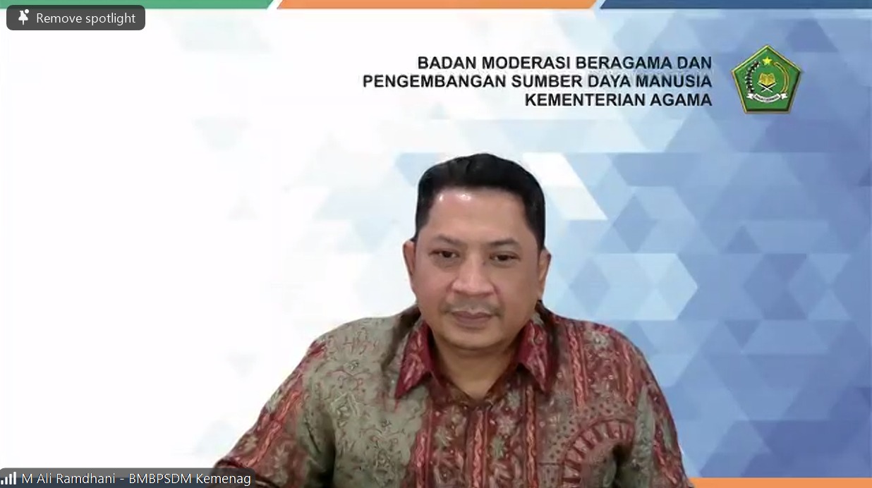 Kepala BMBPSDM Kemenag, M Ali Ramdhani saat Zoom. (dok: kemenag)