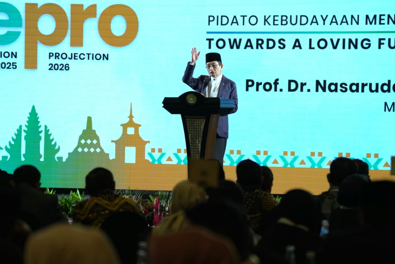 Menteri Agama RI, Nasaruddin Umar saat memberikan pidato kebudayaan dalam acara Repro