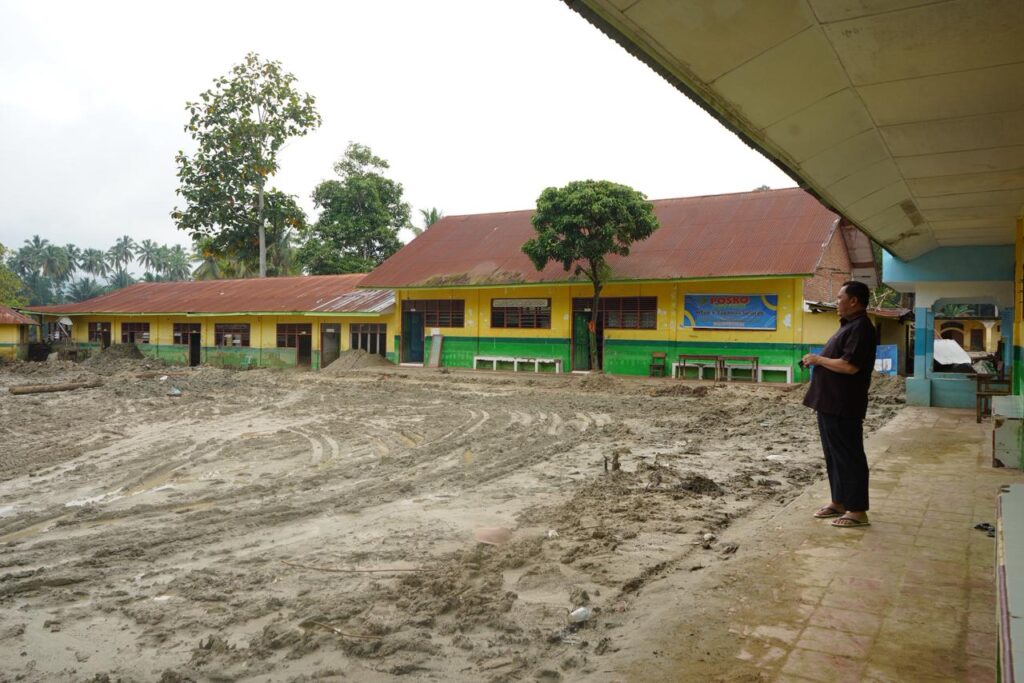 “Kerusakan parah gedung sekolah akibat hantaman kayu-kayu besar yang terseret banjir pada saat kejadian meluapnya dua aliran sungai yang berada di dekat lokasi di Desa Tolang, Kecamatan Sayur Matinggi,” ujarnya.