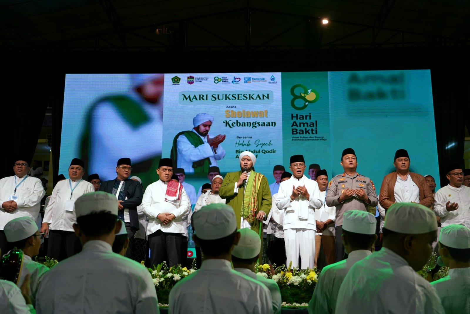 Habib Syech Pimpin Shalawat Kebangsaan di Kegiatan Hari Amal Bakti ke-80 Kemenag 2025 di Stadion Galuh, Kabupaten Ciamis - Jabar. (dok: kemenag)