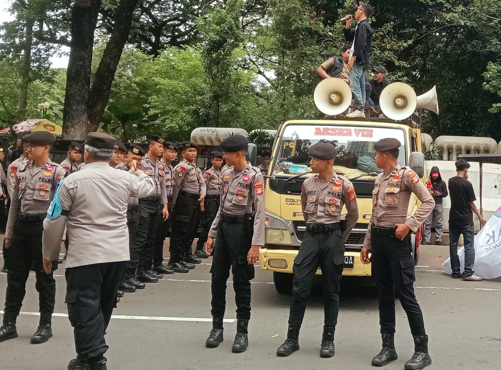 “Kami hadir untuk melayani saudara-saudara kita yang menyampaikan pendapat. Personel di lapangan tidak membawa senjata api dan diperintahkan untuk selalu mengedepankan sikap humanis, persuasif, dan profesional,” ujar Kombes Pol. Reynold.