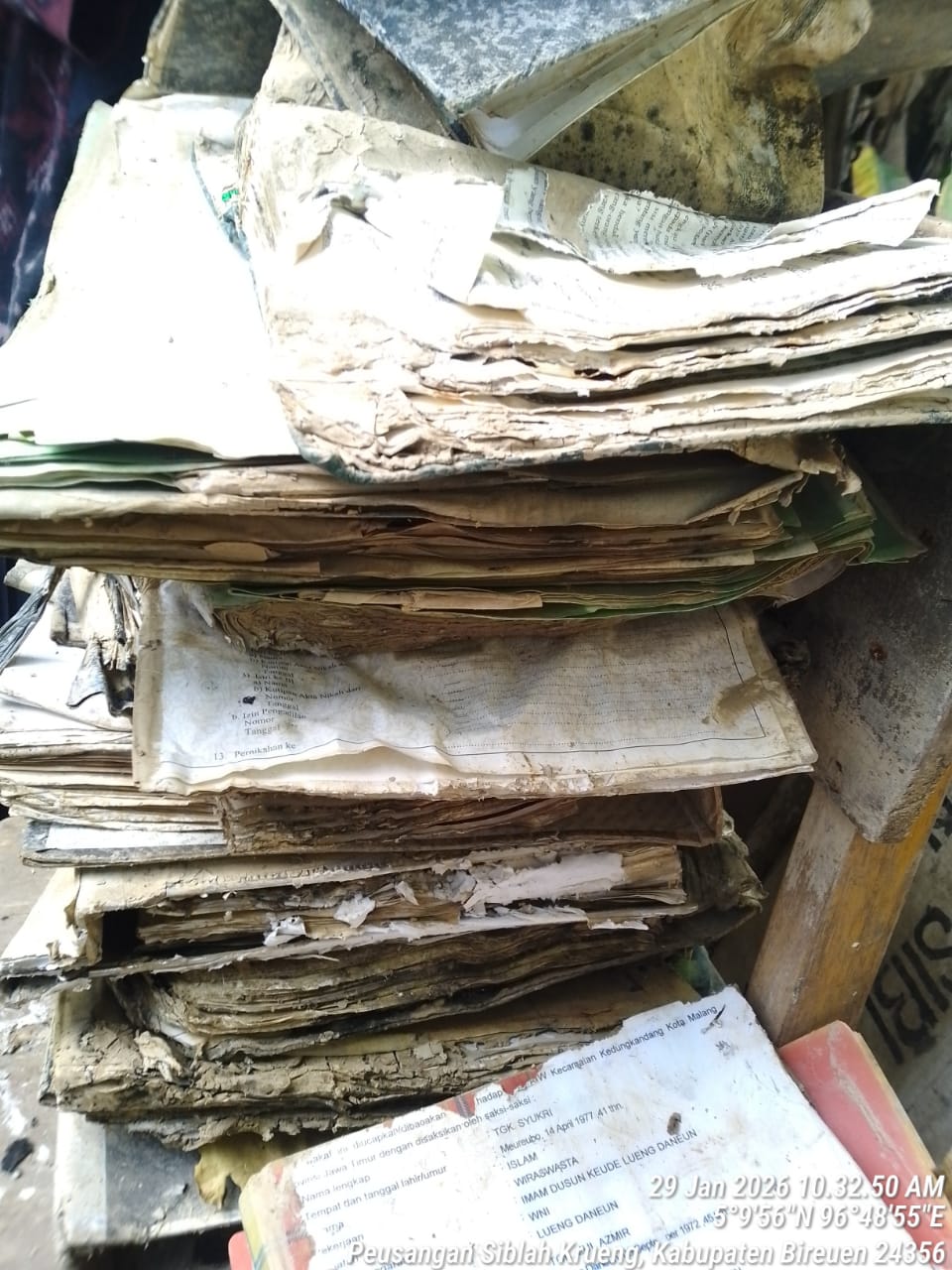 Sementara, di KUA Peusangan Siblah Krueng, Bieureun didapati kondisi arsip rusak sedang hingga berat. Sekitar 40 boks arsip terpapar air dan lumpur lebih lama sehingga struktur kertas berubah signifikan dan berisiko kehilangan informasi jika tidak segera ditangani.