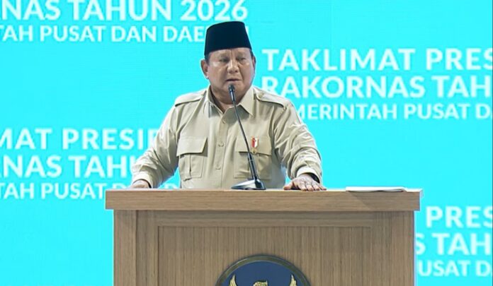 MONITOR, Jakarta – Presiden Prabowo Subianto memaparkan kebijakan strategis pada Rapat Koordinasi Nasional (Rakornas) Pemerintah Pusat dan Daerah Tahun 2026 di Sentul International Convention Center (SICC), Bogor, Jawa Barat. Ada enam kebijakan strategis yang dijelaskan Presiden di depan 4.011 elemen pimpinan kementerian dan lembaga negara, serta kepala daerah dari tingkat provinsi hingga kabupaten/kota se-Indonesia.