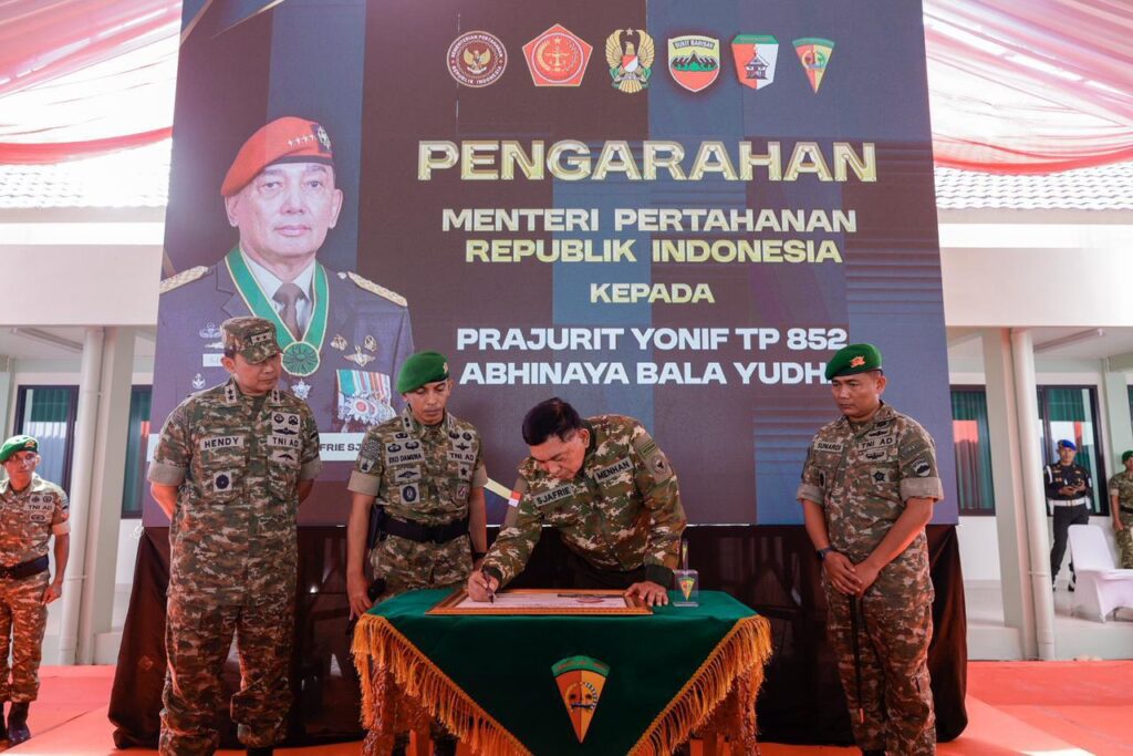 Menhan Didampingi Wakil Panglima TNI Tinjau Yonif TP 852/ABY