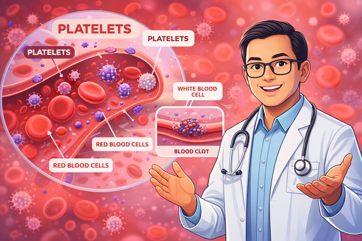 Ia menjelaskan bahwa trombosit menjadi garda terdepan ketika terjadi luka pada pembuluh darah. Ketika pembuluh darah mengalami kerusakan, trombosit akan segera menempel pada area yang luka dan kemudian saling berkumpul untuk membentuk sumbatan sementara.