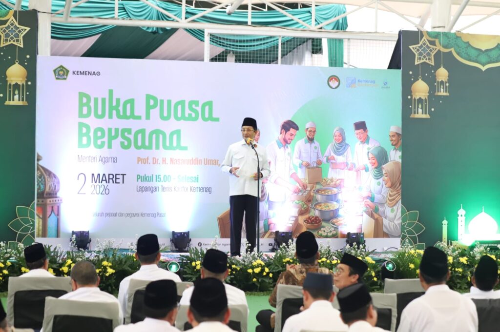 Pesan ini disampaikan Menag dalam agenda buka puasa bersama Keluarga Besar Kementerian Agama, Senin (2/3/2026). Buka puasa bersama pada hari ke-11 Ramadan ini juga dihadiri Wakil Menteri Agama Romo R. Muhammad Syafi’i, serta jajaran pejabat, Ketua Dharma Wanita Persatuan dan jajaran, serta para pegawai di lingkungan Kemenag Pusat.